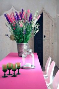 El truco de las flores es saber de antemano qué se quiere comunicar en ese espacio y buscar aquellas que ayuden a comunicarlo, pero vamos a ver cómo se hace esto en la práctica… En este ambiente, por ejemplo, se buscaba generar la idea de decoración árabe u oriental, pues bien, para ello se han escogido estas vistosas flores de tallo largo y colores ácidos para recordar al colorido de estas culturas… el resultado es fabuloso.