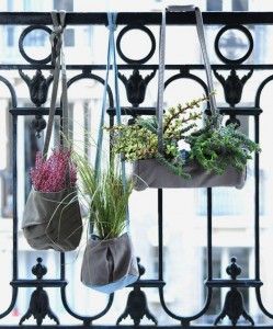 o este pequeño balcón, creando las macetas a través de estas originales bolsa a las que se les ha incorporado una tela impermeable y transpirable dentro.