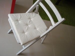 Materiales que necesitaremos: la silla en cuestión, nosotros hemos escogido una plegable de madera sin barnizar, una capa de imprimación, la pintura que deseemos aplicar y brochas o una esponja, vamos a explicar ambos procedimientos. Puede que alguno de vosotros se pregunte ¿Qué es eso de la capa de imprimación? Pues es una pintura que debe aplicarse sobre madera, paredes u otras superficies siempre que deseemos cambiar el color de la pintura o que ésta no sea absorbida por el material en cuestión. La capas de imprimación se pueden comprar en cualquier sitio de pinturas y se piden con ese nombre.
