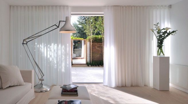 White Curtain Slide Door London Home With Scandinavian Interior