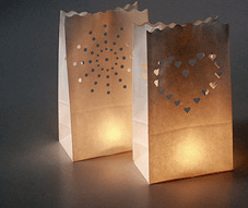 Y si es mucha la superficie a cubrir, puedes iluminar también con farolillos hechos con bolsas de papel, como los que nos proponen nuestros amigos de Saveoncraft (http://www.save-on-crafts.com). Solo tienes que hacerles agujeros para que tengan ventilación.