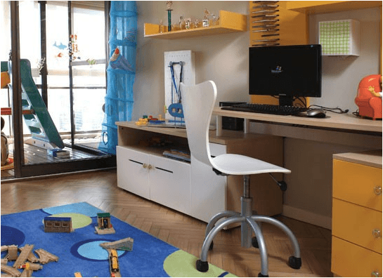 A partir de los 7-8 años, la zona de estudio en la habitación infantil va apareciendo. Antes es simplemente una zona de juegos. Poco a poco, el niño se debe adaptar a la evolución y pensar que tendrá un rincón de estudio en su habitatción.