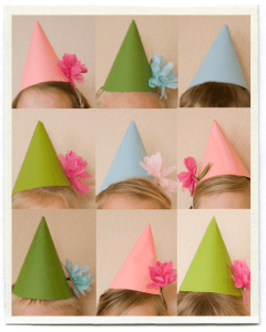 Pero lo que hará de tu fiesta todo un éxito sin duda serán los pequeños detalles. Si es un cumpleaños infantil, puedes crear gorros para los peques con cartulinas de colores y flores de plástico: