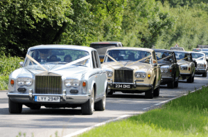 Los novios y los familiares de éstos llegaron a la ceremonia en una procesión de Rolls Royce: