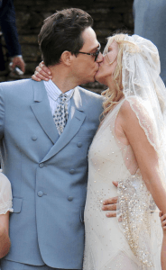 Kate Moss contrajo matrimonio el pasado fin de semana con Jamie Hince, guitarrista de The Kills. Ella lucía un diseño con toques medievales de Jonh Galliano, devolviéndole así el favor a éste y apoyándole ahora que está pasando por momentos difíciles: